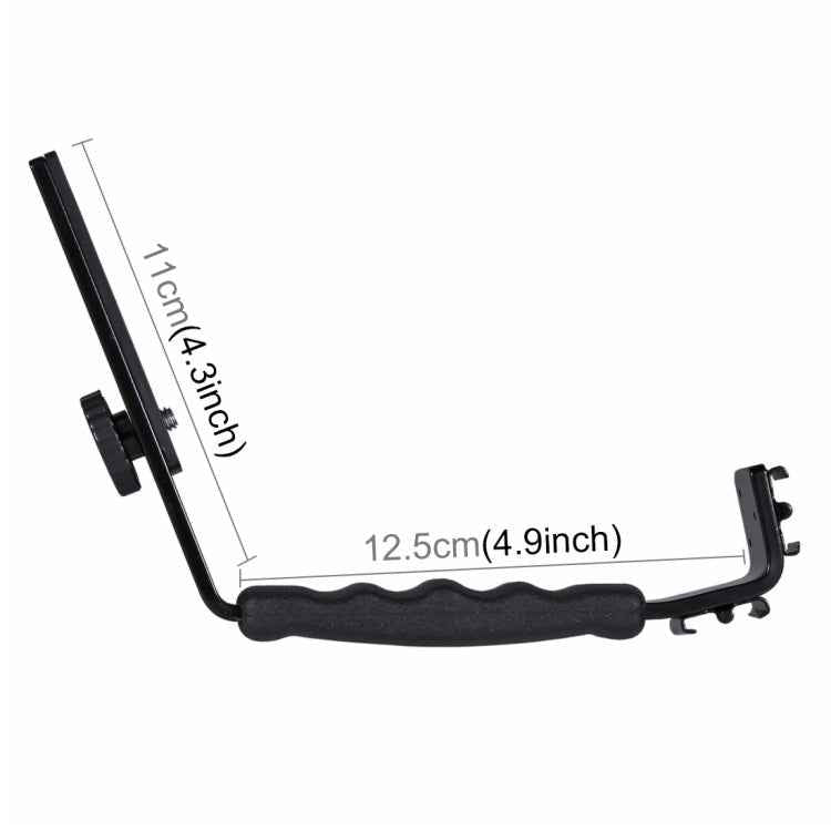 PULUZ L-Shape Bracket Handheld Grip Holder with Dual Side Cold Shoe Mounts for Video Light Flash, DSLR Camera