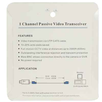 2 PCS 1 Channel Passive Video Transceiver
