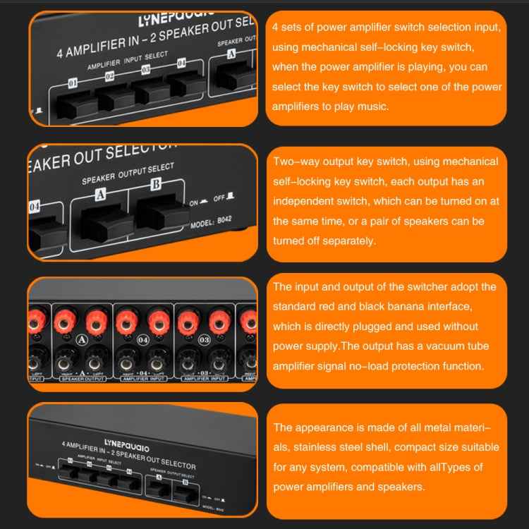 4 Input 2 Output Power Amplifier And Speaker Switcher Speaker Switch Splitter Comparator 300W Per Channel Without Loss Of Sound Quality