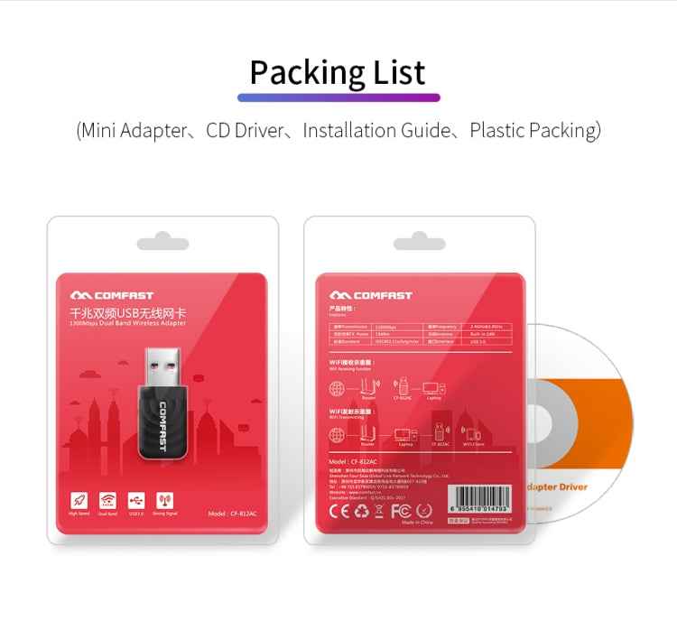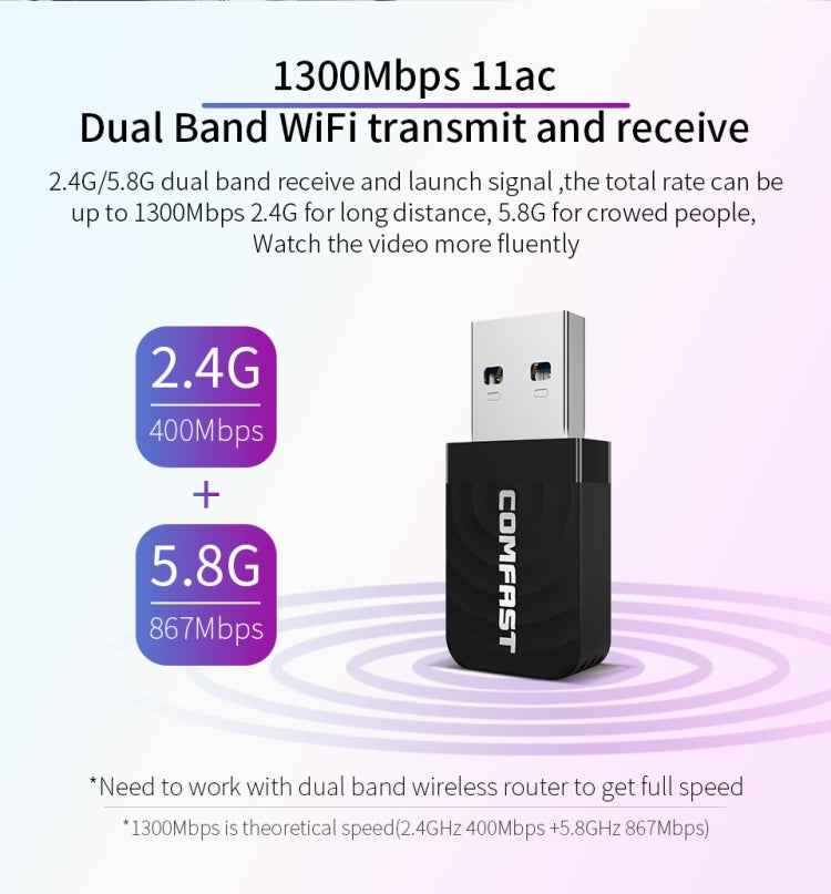 COMFAST CF-812AC USB WiFi Adapter-1300 Mbps USB di Rete Wireless wiFi