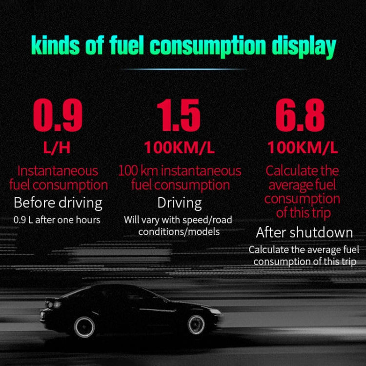 4. Display information: driving speed, water tank temperature, battery voltage, engine speed, instantaneous fuel consumption, 100 kilometers of instantaneous fuel consumption, the number of kilometers of this trip, this travel time, 100 kilometers of acceleration time, detection of fault codes, elimination of fault codes