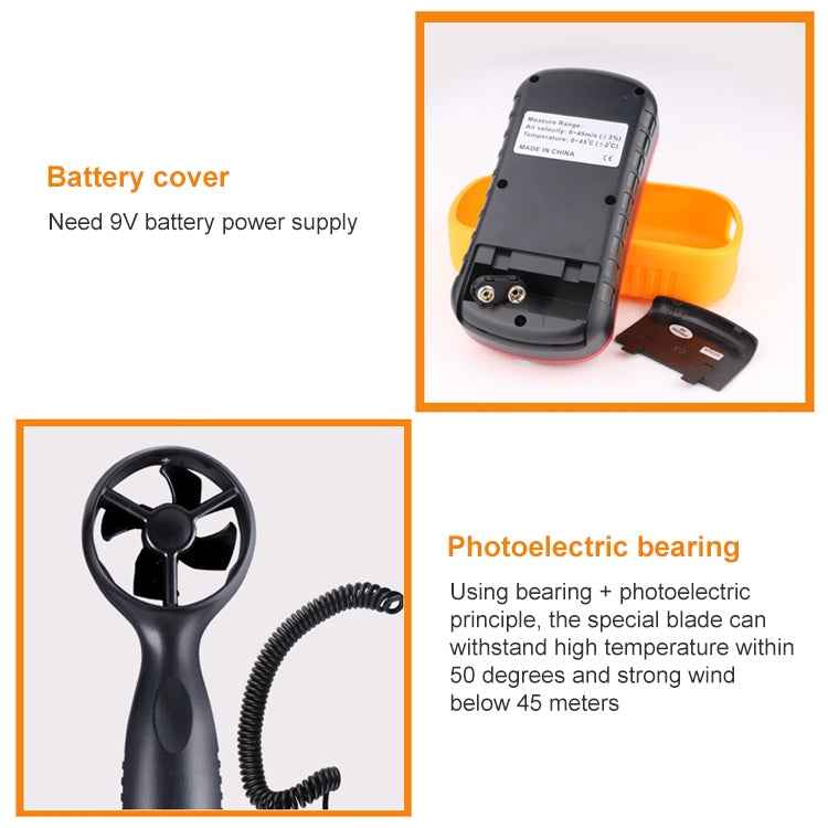 2)Range of air velocity: 0~45 m/s, 0~140 km/hr, 0~8800 Ft/min, 0~88Knots, 0~100 mph