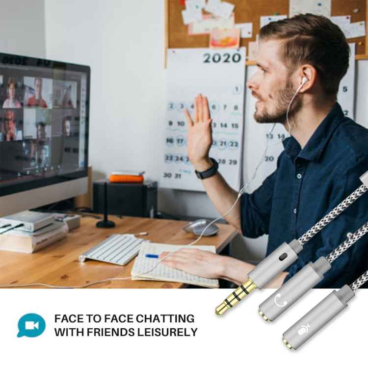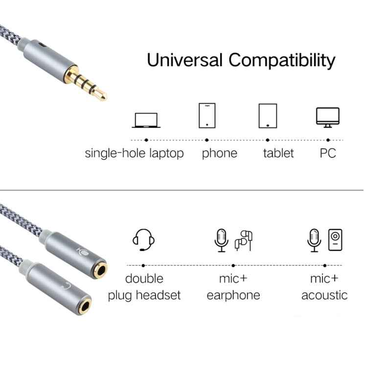 HY191 2 in 1 3.5mm Male to Microphone + Audio Female Braided Audio Cable, Length: 26cm