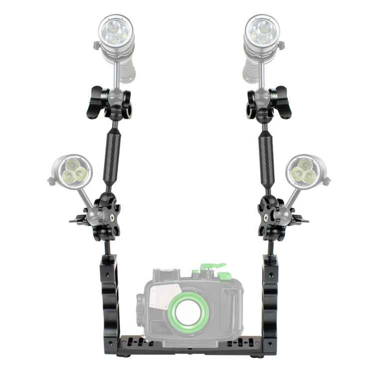 PULUZ Dual Handle Aluminium Tray Stabilizer with 2 x Dual Ball Aluminum Alloy Clamp & 2 x 7 inch Floating Arm for Underwater Camera Housings