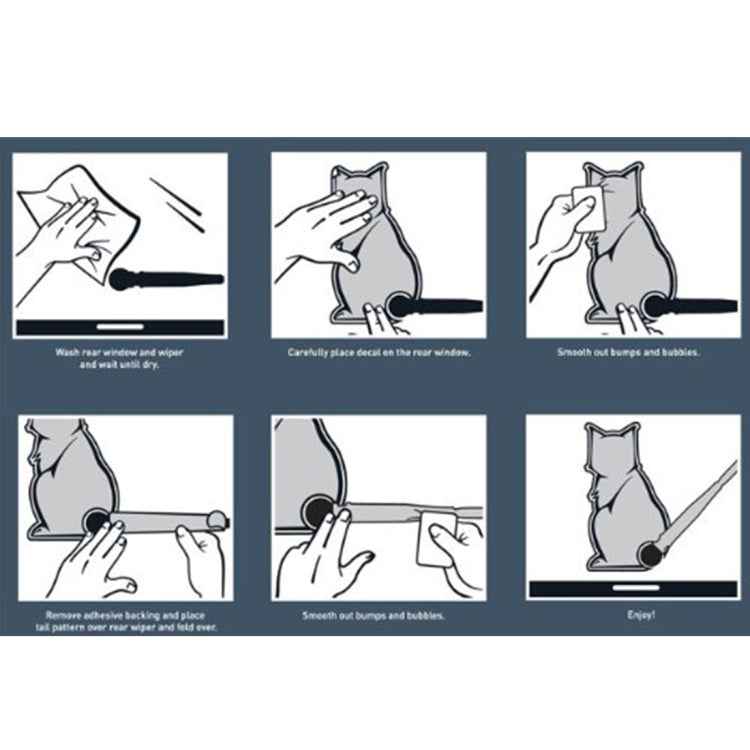 3. Cat is approx. 25 x 14cm, tail size: 26 x 3cm- Note: Check the laws in your jurisdiction before applying the Moving Tail Kitty Car Decal to your rear window.