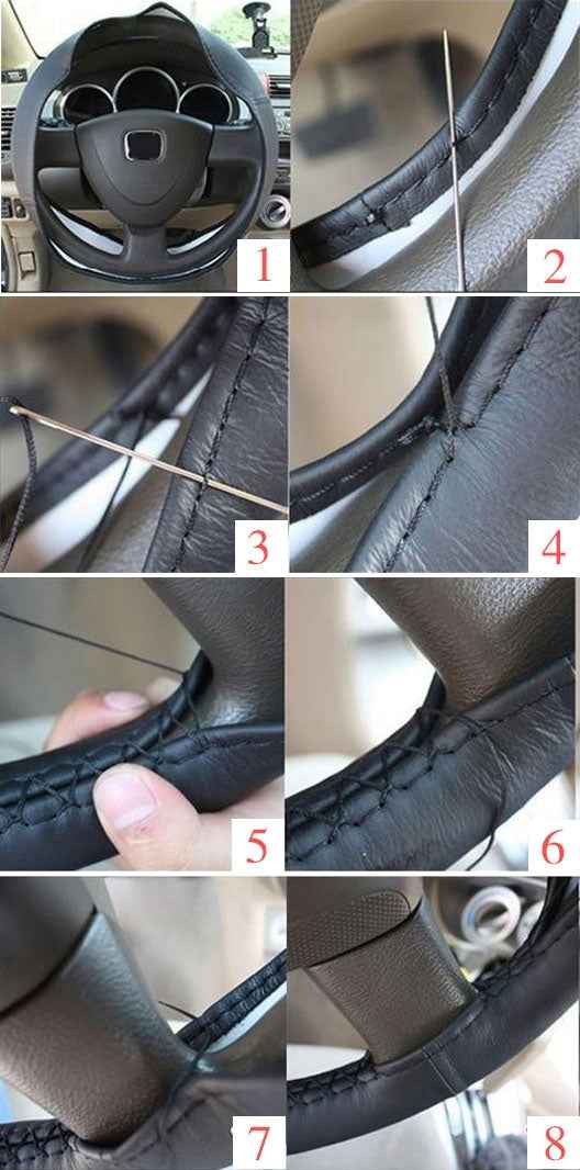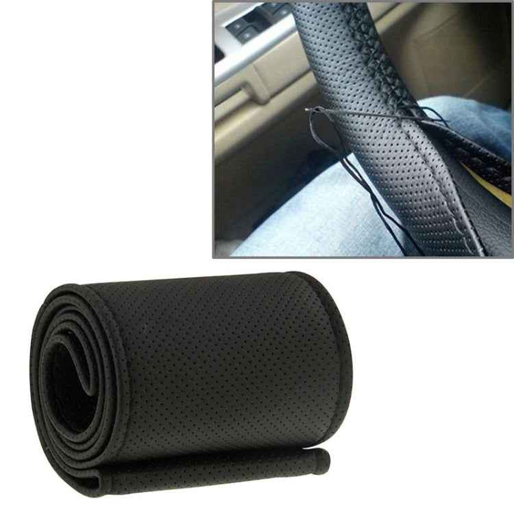 PU Leather Steering Wheel Cover With Needle and Thread, Size: 54x10.5cm