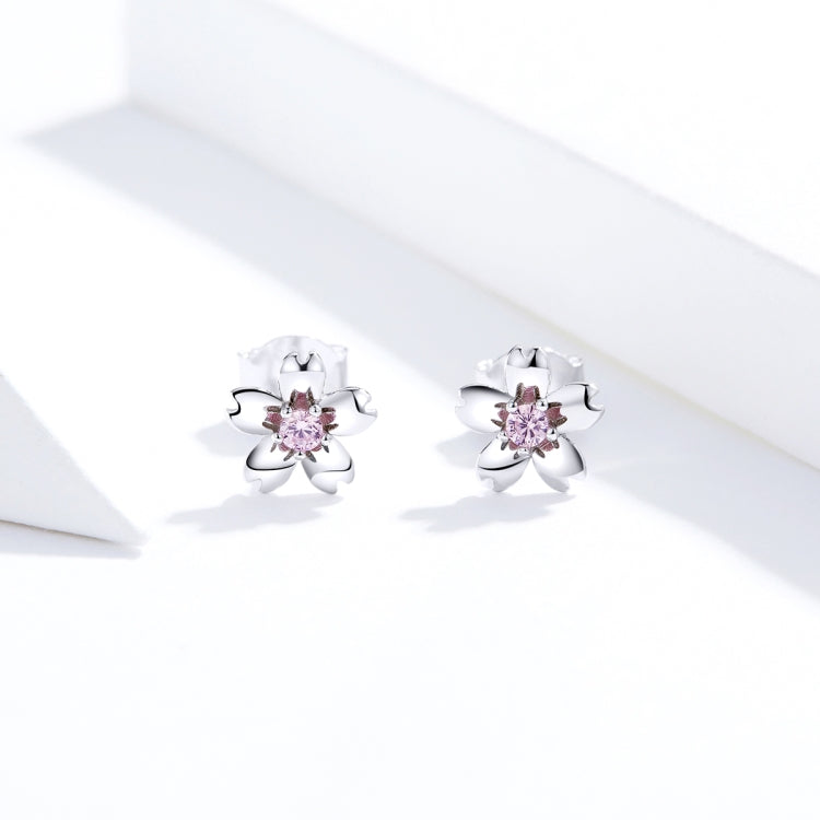 Sterling Silver Flower Earrings S925 Temperament Simple Zircon Earrings, SCE784